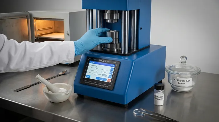 Haben Sie Schwierigkeiten bei der Herstellung von KBr-Presslingen für Ihre FTIR-Analyse? KINTEK ist spezialisiert auf Laborpressen, einschließlich automatischer Laborpressen, isostatischer Pressen und beheizter Laborpressen, die entwickelt wurden, um präzisen Druck und Temperaturkontrolle für perfekte Presslinge jedes Mal zu liefern. Unsere Geräte helfen Laboren, zuverlässige, qualitativ hochwertige Ergebnisse zu erzielen, indem sie Feuchtigkeit minimieren und gleichmäßige Proben gewährleisten. Kontaktieren Sie uns noch heute, um zu erfahren, wie KINTEK Ihren analytischen Workflow verbessern und die Effizienz steigern kann!