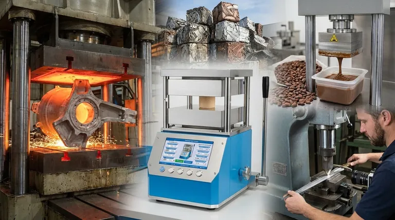 Über einfaches Stanzen hinaus ist eine Hydraulikpresse ein bemerkenswert vielseitiges Werkzeug, das in hochspezialisierten industriellen Anwendungen eingesetzt wird, von der Herstellung von fettfreiem Kakaopulver über das Zerkleinern von Autos zum Recycling bis hin zum Schmieden hochpräziser Luft- und Raumfahrtkomponenten. Ihre Kernfunktion – die Fähigkeit, immense und kontrollierbare Kraft über eine große Fläche auszuüben – ermöglicht es ihr, Materialien auf eine Weise zu formen, zu komprimieren, zu montieren und sogar zu zerlegen, die andere Maschinen nicht können.